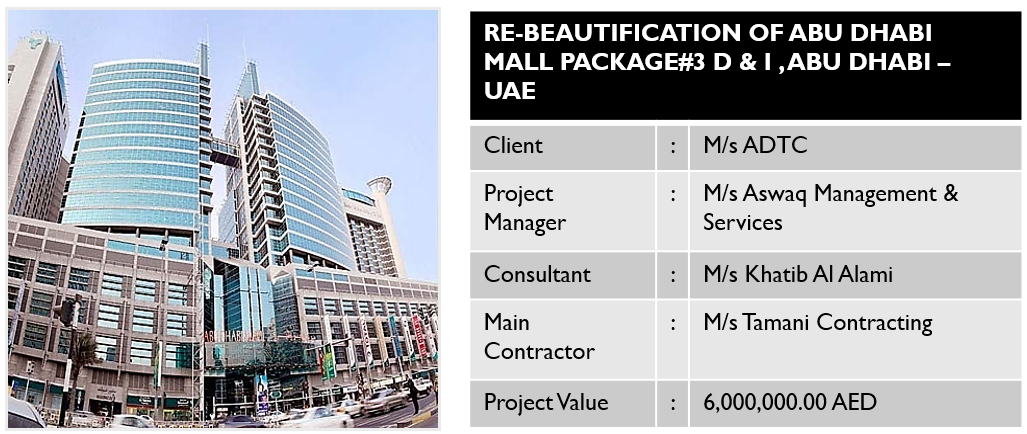 RE-BEAUTIFICATION OF ABU DHABI MALL PACKAGE#3 D & I , ABU DHABI – UAE