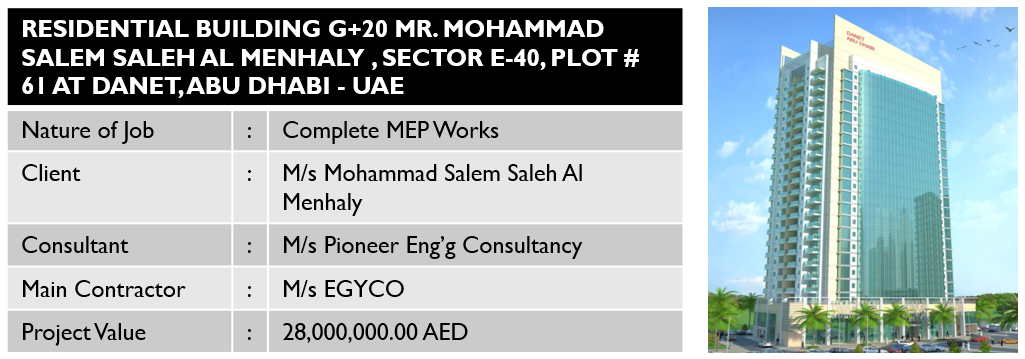 RESIDENTIAL BUILDING G+20 MR. MOHAMMAD SALEM SALEH AL MENHALY , SECTOR E-40, PLOT # 61 AT DANET, ABU DHABI - UAE