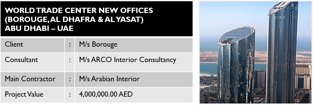 WORLD TRADE CENTER NEW OFFICES (BOROUGE, AL DHAFRA & AL YASAT), ABU DHABI – UAE