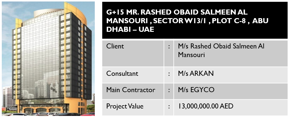G+15 MR. RASHED OBAID SALMEEN AL MANSOURI , SECTOR W13/1 , PLOT C-8 , ABU DHABI, UAE